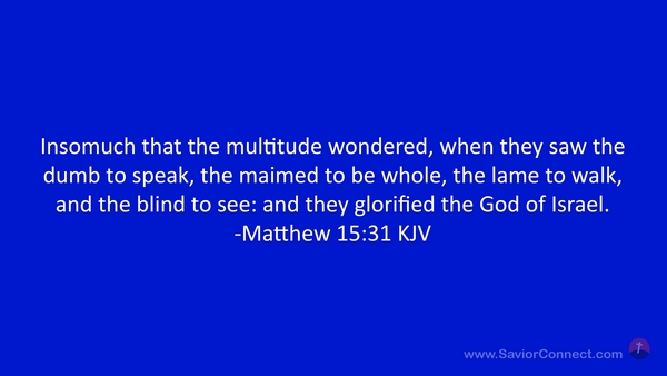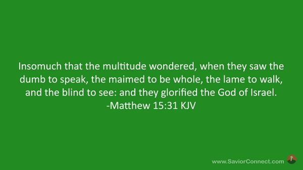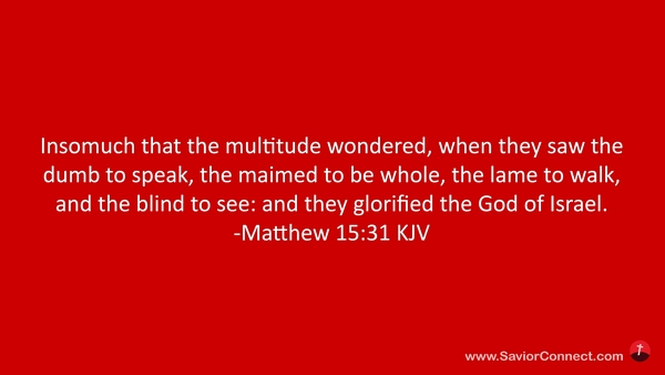 Insomuch that the multitude wondered, when they saw the dumb to speak, the maimed to be whole, the lame to walk, and the blind to see: and they glorified the God of Israel. -Matthew 15:31 KJV