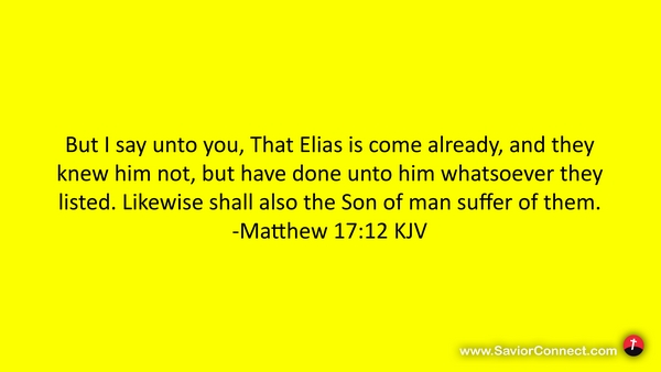 But I say unto you, That Elias is come already, and they knew him not, but have done unto him whatsoever they listed. Likewise shall also the Son of man suffer of them. -Matthew 17:12 KJV