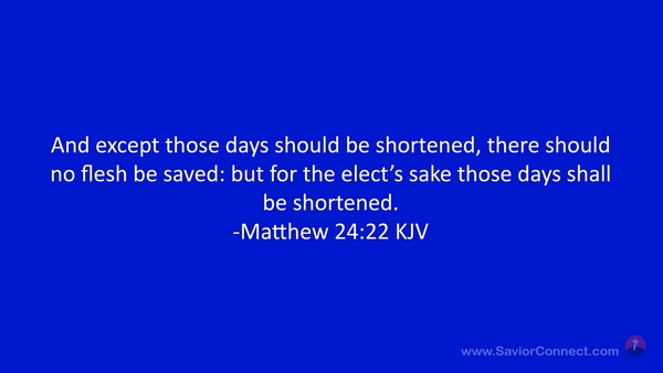 And except those days should be shortened, there should no flesh be saved: but for the elect's sake those days shall be shortened. -Matthew 24:22 KJV