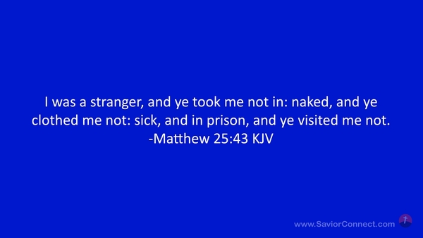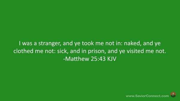 I was a stranger, and ye took me not in: naked, and ye clothed me not: sick, and in prison, and ye visited me not. -Matthew 25:43 KJV