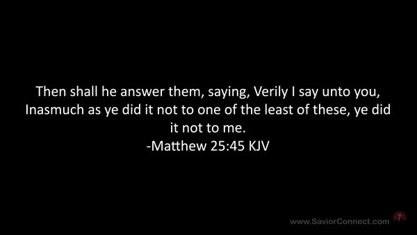 Then shall he answer them, saying, Verily I say unto you, Inasmuch as ye did it not to one of the least of these, ye did it not to me. -Matthew 25:45 KJV