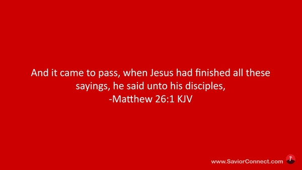 And it came to pass, when Jesus had finished all these sayings, he said unto his disciples, -Matthew 26:1 KJV