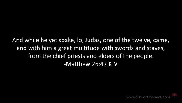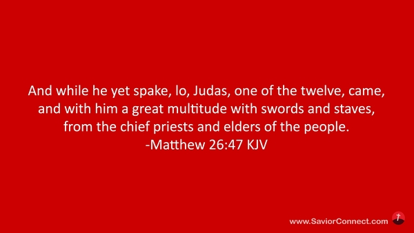 And while he yet spake, lo, Judas, one of the twelve, came, and with him a great multitude with swords and staves, from the chief priests and elders of the people. -Matthew 26:47 KJV