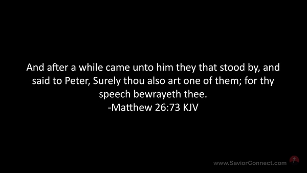 And after a while came unto him they that stood by, and said to Peter, Surely thou also art one of them; for thy speech bewrayeth thee. -Matthew 26:73 KJV