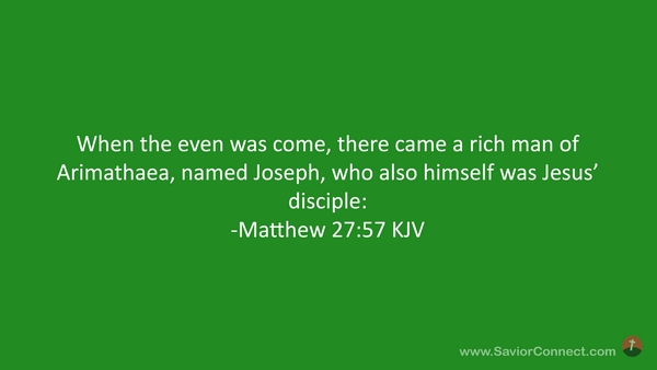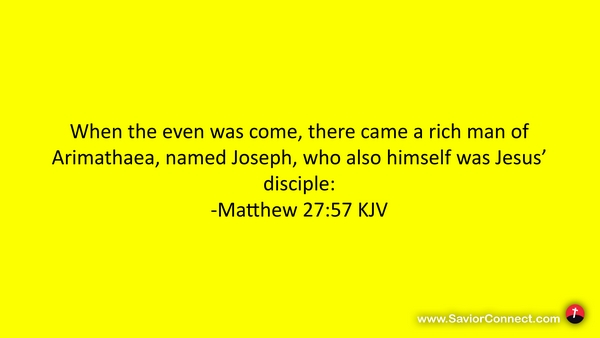 When the even was come, there came a rich man of Arimathaea, named Joseph, who also himself was Jesus' disciple: -Matthew 27:57 KJV