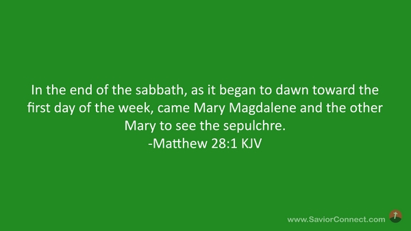 In the end of the sabbath, as it began to dawn toward the first day of the week, came Mary Magdalene and the other Mary to see the sepulchre. -Matthew 28:1 KJV