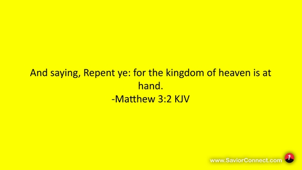 And saying, Repent ye: for the kingdom of heaven is at hand. -Matthew 3:2 KJV