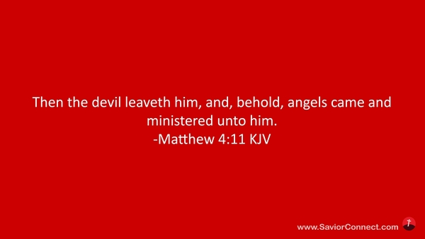 Then the devil leaveth him, and, behold, angels came and ministered unto him. -Matthew 4:11 KJV