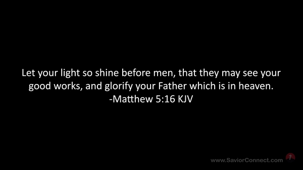 Let your light so shine before men, that they may see your good works, and glorify your Father which is in heaven. -Matthew 5:16 KJV