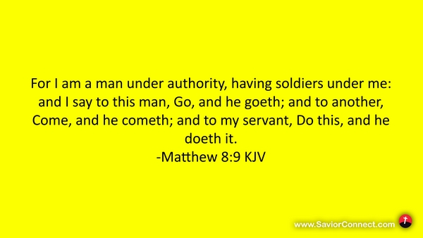 For I am a man under authority, having soldiers under me: and I say to this man, Go, and he goeth; and to another, Come, and he cometh; and to my servant, Do this, and he doeth it. -Matthew 8:9 KJV