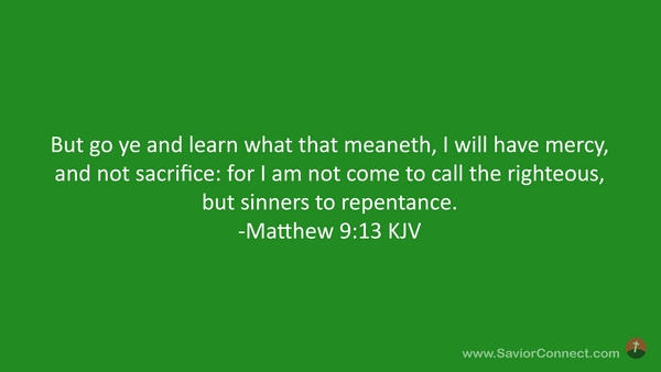 But go ye and learn what that meaneth, I will have mercy, and not sacrifice: for I am not come to call the righteous, but sinners to repentance. -Matthew 9:13 KJV