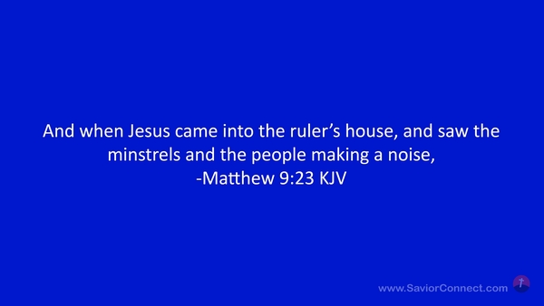 And when Jesus came into the ruler's house, and saw the minstrels and the people making a noise, -Matthew 9:23 KJV