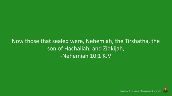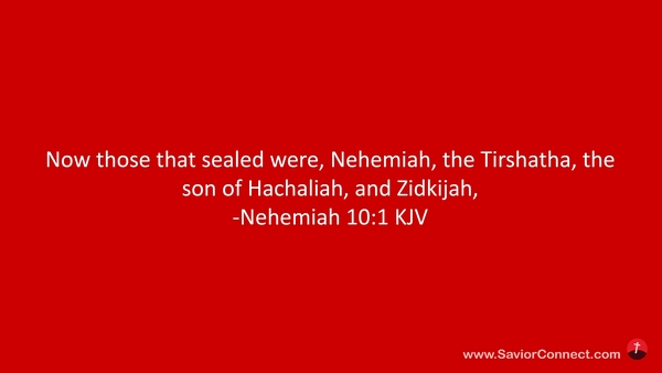 Now those that sealed were, Nehemiah, the Tirshatha, the son of Hachaliah, and Zidkijah, -Nehemiah 10:1 KJV