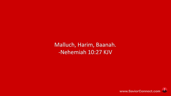 Malluch, Harim, Baanah. -Nehemiah 10:27 KJV