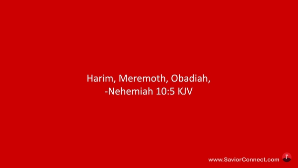 Harim, Meremoth, Obadiah, -Nehemiah 10:5 KJV