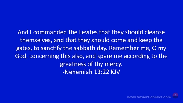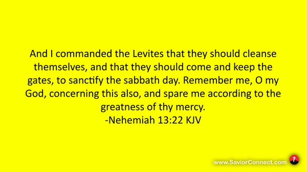 And I commanded the Levites that they should cleanse themselves, and that they should come and keep the gates, to sanctify the sabbath day. Remember me, O my God, concerning this also, and spare me according to the greatness of thy mercy. -Nehemiah 13:22 KJV