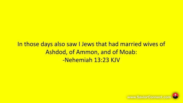 In those days also saw I Jews that had married wives of Ashdod, of Ammon, and of Moab: -Nehemiah 13:23 KJV