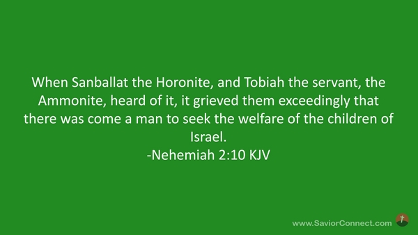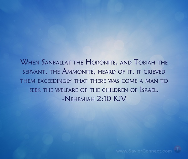 When Sanballat the Horonite, and Tobiah the servant, the Ammonite, heard of it, it grieved them exceedingly that there was come a man to seek the welfare of the children of Israel. -Nehemiah 2:10 KJV