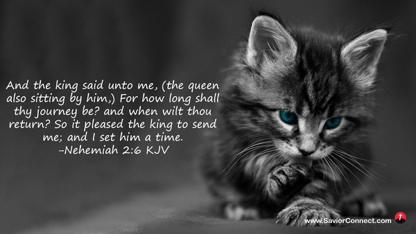 And the king said unto me, (the queen also sitting by him,) For how long shall thy journey be? and when wilt thou return? So it pleased the king to send me; and I set him a time. -Nehemiah 2:6 KJV