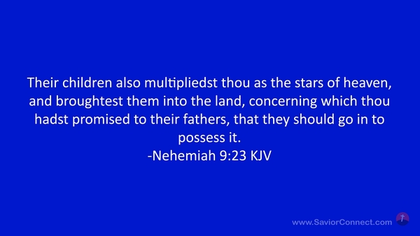 Their children also multipliedst thou as the stars of heaven, and broughtest them into the land, concerning which thou hadst promised to their fathers, that they should go in to possess it. -Nehemiah 9:23 KJV