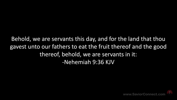 Behold, we are servants this day, and for the land that thou gavest unto our fathers to eat the fruit thereof and the good thereof, behold, we are servants in it: -Nehemiah 9:36 KJV