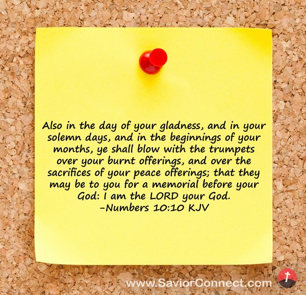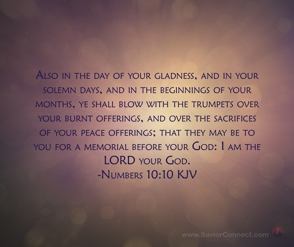 Also in the day of your gladness, and in your solemn days, and in the beginnings of your months, ye shall blow with the trumpets over your burnt offerings, and over the sacrifices of your peace offerings; that they may be to you for a memorial before your God: I am the LORD your God. -Numbers 10:10 KJV