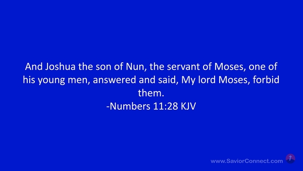 And Joshua the son of Nun, the servant of Moses, one of his young men, answered and said, My lord Moses, forbid them. -Numbers 11:28 KJV
