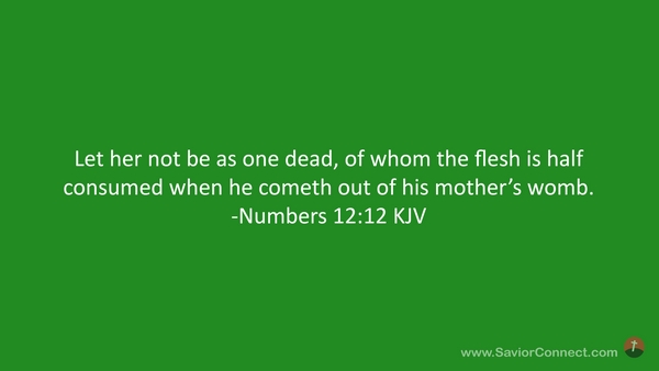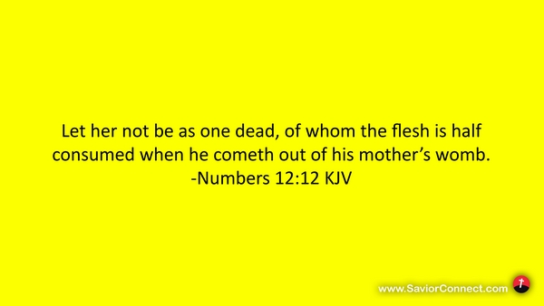 Let her not be as one dead, of whom the flesh is half consumed when he cometh out of his mother's womb. -Numbers 12:12 KJV