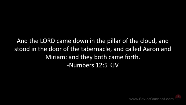 And the LORD came down in the pillar of the cloud, and stood in the door of the tabernacle, and called Aaron and Miriam: and they both came forth. -Numbers 12:5 KJV