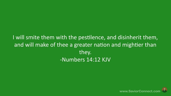 I will smite them with the pestilence, and disinherit them, and will make of thee a greater nation and mightier than they. -Numbers 14:12 KJV