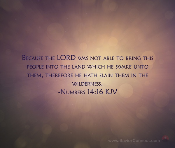 Because the LORD was not able to bring this people into the land which he sware unto them, therefore he hath slain them in the wilderness. -Numbers 14:16 KJV