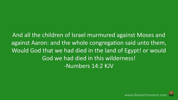 And all the children of Israel murmured against Moses and against Aaron: and the whole congregation said unto them, Would God that we had died in the land of Egypt! or would God we had died in this wilderness! -Numbers 14:2 KJV