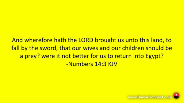 And wherefore hath the LORD brought us unto this land, to fall by the sword, that our wives and our children should be a prey? were it not better for us to return into Egypt? -Numbers 14:3 KJV