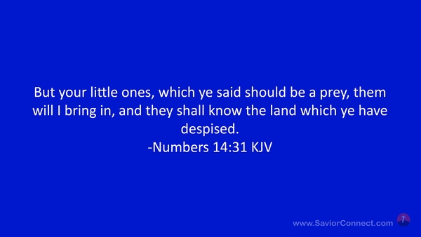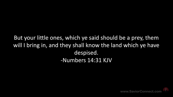 But your little ones, which ye said should be a prey, them will I bring in, and they shall know the land which ye have despised. -Numbers 14:31 KJV