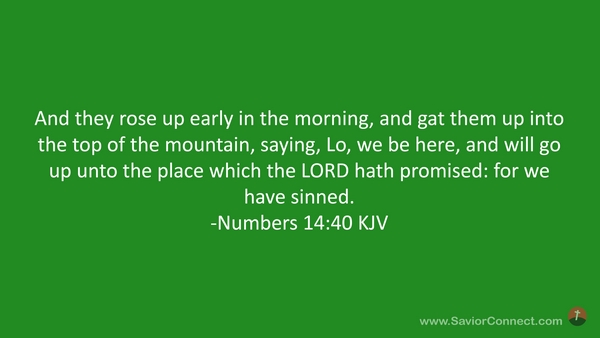 And they rose up early in the morning, and gat them up into the top of the mountain, saying, Lo, we be here, and will go up unto the place which the LORD hath promised: for we have sinned. -Numbers 14:40 KJV