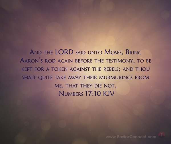 And the LORD said unto Moses, Bring Aaron's rod again before the testimony, to be kept for a token against the rebels; and thou shalt quite take away their murmurings from me, that they die not. -Numbers 17:10 KJV