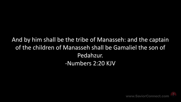 And by him shall be the tribe of Manasseh: and the captain of the children of Manasseh shall be Gamaliel the son of Pedahzur. -Numbers 2:20 KJV