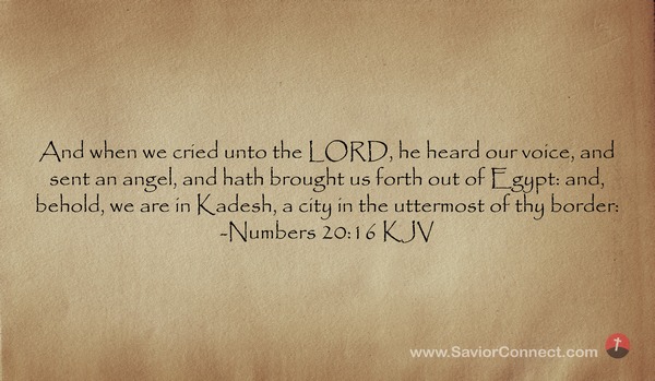 And when we cried unto the LORD, he heard our voice, and sent an angel, and hath brought us forth out of Egypt: and, behold, we are in Kadesh, a city in the uttermost of thy border: -Numbers 20:16 KJV