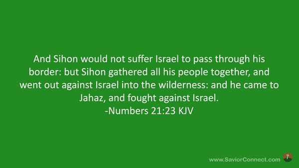 And Sihon would not suffer Israel to pass through his border: but Sihon gathered all his people together, and went out against Israel into the wilderness: and he came to Jahaz, and fought against Israel. -Numbers 21:23 KJV