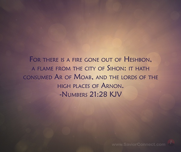 For there is a fire gone out of Heshbon, a flame from the city of Sihon: it hath consumed Ar of Moab, and the lords of the high places of Arnon. -Numbers 21:28 KJV