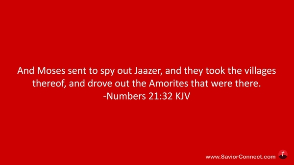 And Moses sent to spy out Jaazer, and they took the villages thereof, and drove out the Amorites that were there. -Numbers 21:32 KJV