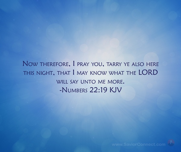 Now therefore, I pray you, tarry ye also here this night, that I may know what the LORD will say unto me more. -Numbers 22:19 KJV