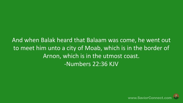 And when Balak heard that Balaam was come, he went out to meet him unto a city of Moab, which is in the border of Arnon, which is in the utmost coast. -Numbers 22:36 KJV