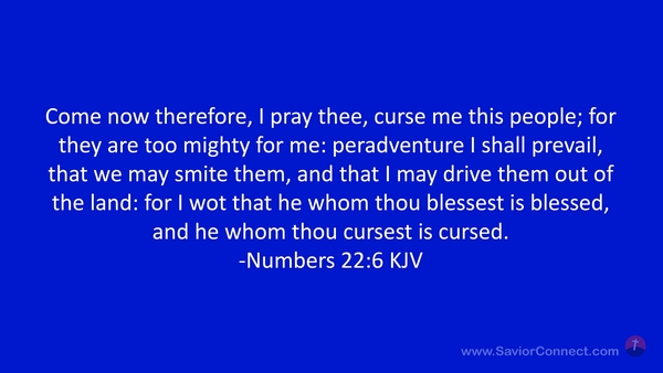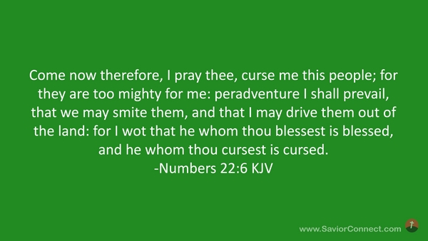 Come now therefore, I pray thee, curse me this people; for they are too mighty for me: peradventure I shall prevail, that we may smite them, and that I may drive them out of the land: for I wot that he whom thou blessest is blessed, and he whom thou cursest is cursed. -Numbers 22:6 KJV