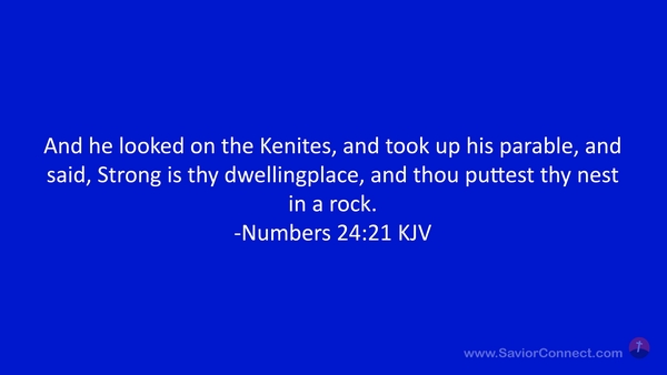 And he looked on the Kenites, and took up his parable, and said, Strong is thy dwellingplace, and thou puttest thy nest in a rock. -Numbers 24:21 KJV