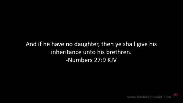 And if he have no daughter, then ye shall give his inheritance unto his brethren. -Numbers 27:9 KJV