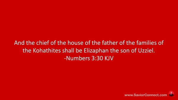 And the chief of the house of the father of the families of the Kohathites shall be Elizaphan the son of Uzziel. -Numbers 3:30 KJV