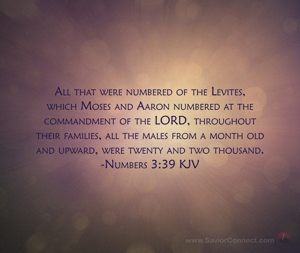 All that were numbered of the Levites, which Moses and Aaron numbered at the commandment of the LORD, throughout their families, all the males from a month old and upward, were twenty and two thousand. -Numbers 3:39 KJV