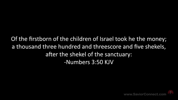 Of the firstborn of the children of Israel took he the money; a thousand three hundred and threescore and five shekels, after the shekel of the sanctuary: -Numbers 3:50 KJV