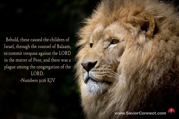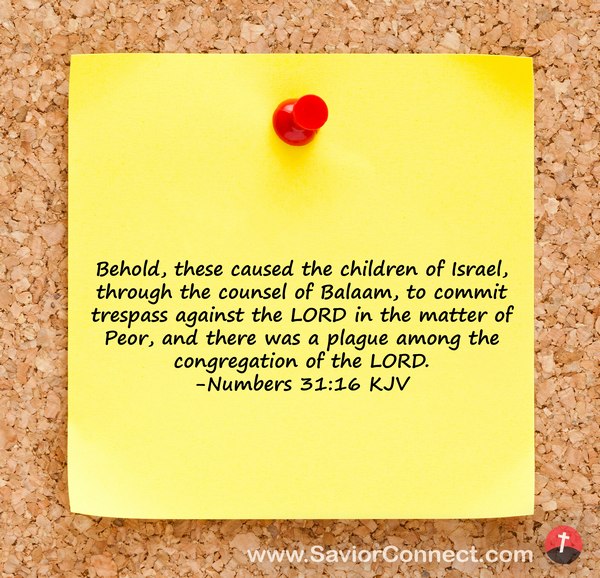 Behold, these caused the children of Israel, through the counsel of Balaam, to commit trespass against the LORD in the matter of Peor, and there was a plague among the congregation of the LORD. -Numbers 31:16 KJV